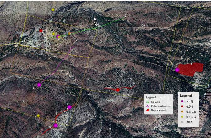 ‘These assay results confirm the exploration potential at the Silver King project,’ said Dr. Craig Gibson, Chief Exploration Officer. ‘Three samples with silver values reported as greater than 200 g/t were taken from the Silver King mine dump and from the new polymetallic vein recognized in our recent exploration program. Samples with high copper values, that also exhibit important gold values, are largely from the replacement mineralization which is similar to the type of mineralization at the nearby Magma mine.’