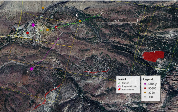 Table 1. Assay results for selected samples from newly identified veins at the Silver King project.