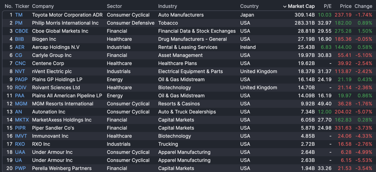 It’ll also be joined by Philip Morris, Cboe Global, and Biogen Inc, among others. Here’s a list of the reports, along with their stock’s performance on the tepid Thursday we all just experienced: